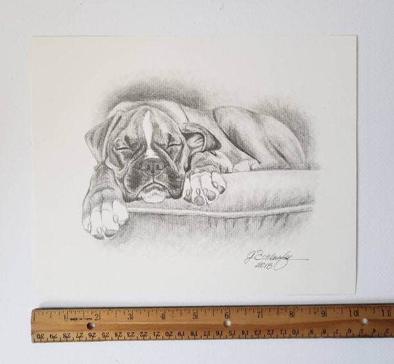 8x10 Boxer Dog Puppy Art Pet Portrait Pencil Drawing Original Etsy Uk